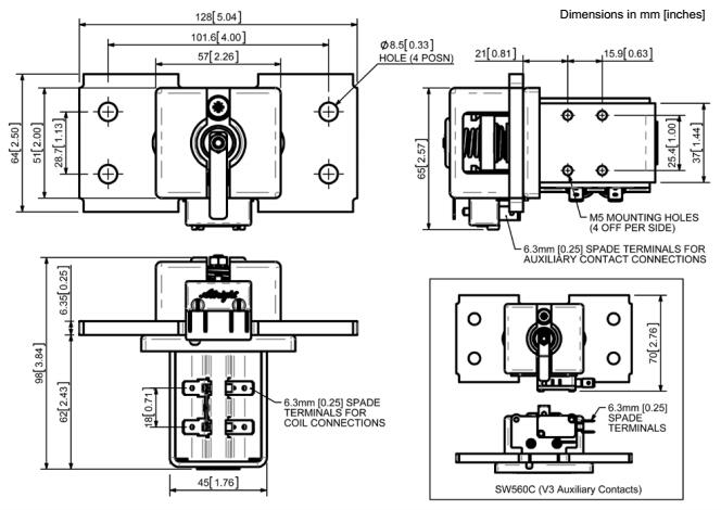 SW560具有双重断裂主触点和银合金尖端,这些尖端具有耐焊接性,耐磨损性和导电性能优异。主触点上的银镀层是SW560的标准配置,但可以选择将其从规范中排除。这种紧凑型接触器可以垂直或水平安装母线,但如果垂直安装,线圈应位于底部。如果顶部需要线圈,我们可以调整接触器来弥补这一点。可选的附加装置包括辅助开关,支架,线圈表面处理和磁性锁定,使接触器保持闭合状态,同时不消耗线圈功率。