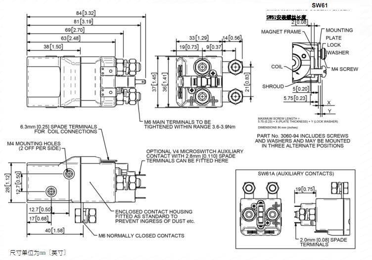 SW60P采用单极双断接主接触器,采用银合金尖端,耐焊接,耐磨,导电性能优良。SW60P采用封闭式顶盖,可提供IP66环保。SW60P具有M6螺柱主端子和6.3mm铲形线圈连接。它可以通过安装支架(随附)安装。安装可以在接触器的侧面或底座上。