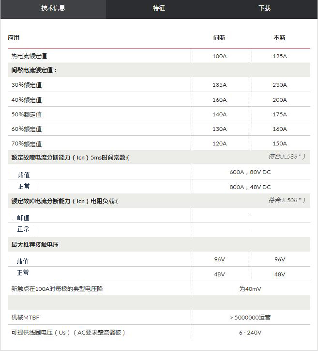 SW90专为直流负载而设计,包括用于电动车辆(如工业卡车)以及电信和配电应用的电机。 针对中断和不间断负载而开发的 SW90适用于开关电阻,电容和电感负载 。